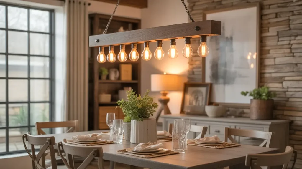 Ready to bring a bit of the outdoors in, but in a way that feels chic and not like you live in a log cabin (unless you do, which is cool)? The rustic wood beam fixture is your answer. It’s earthy, substantial, and makes a serious statement.