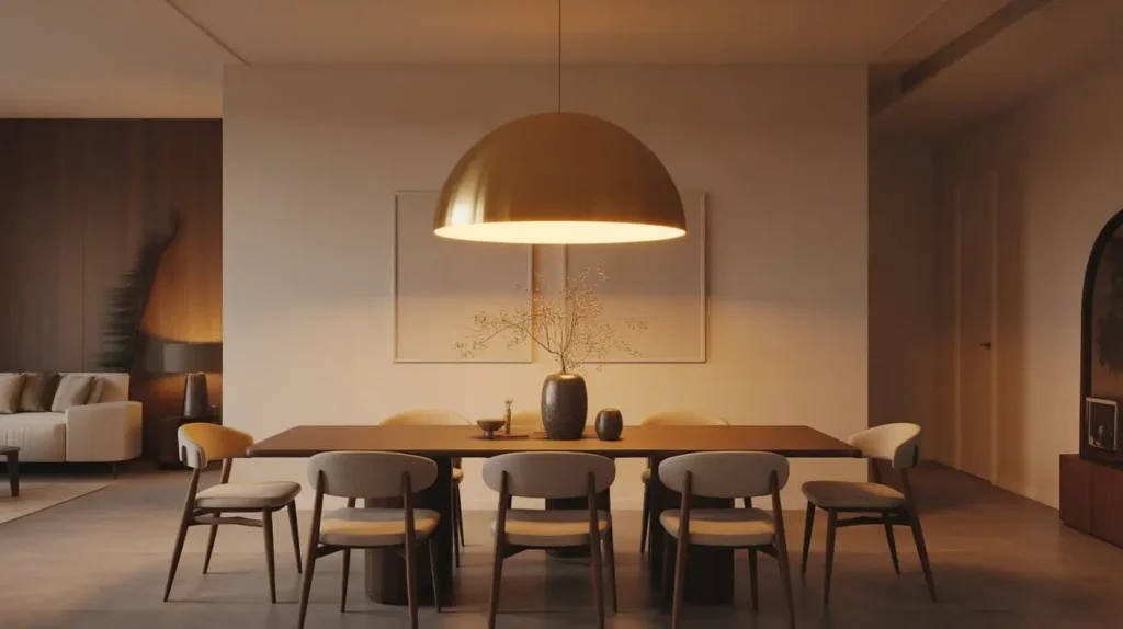 This style shines (literally) in minimalist, contemporary, or even glam-leaning spaces. A single large dome looks incredible over a round table, creating a perfect visual anchor. If you have a longer, rectangular table, you can play with two or three smaller domes in a row for a more balanced effect. It pairs beautifully with dark, moody wall colors or clean, all-white palettes.