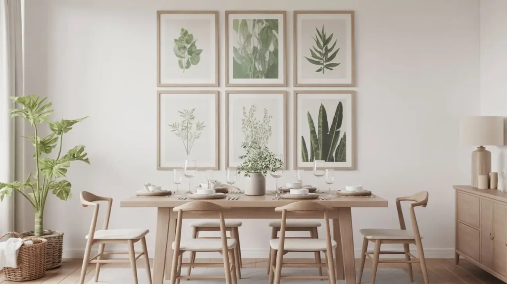 This is one of the easiest ways to create a high-impact gallery wall. Because the subject matter is consistent, it feels unified even if the individual prints are different. It’s also a gentle way to introduce color and pattern into a room without committing to a wild wallpaper or a bold piece of art. It’s just… pleasant. And sometimes, pleasant is exactly what a dining room needs.