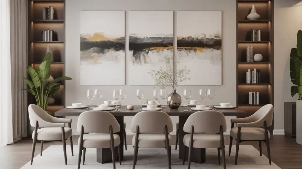 The most important thing to remember is that your dining room wall is your canvas. It’s a space to reflect who you are and what you love. Whether you’re a bold abstract-lover, a minimalist at heart, or a collector of quirky plates, there’s an idea here that can be tailored to your unique style.