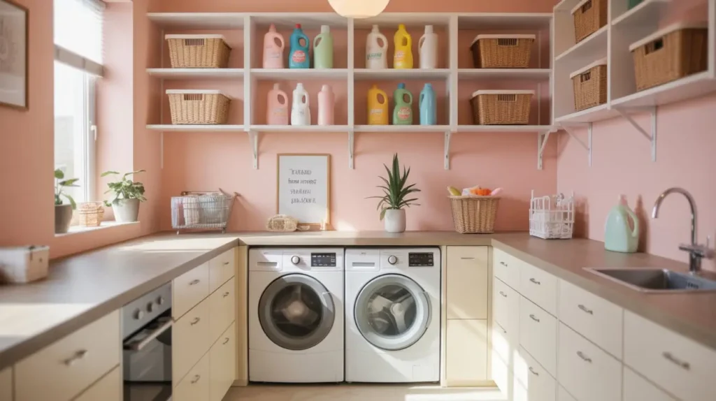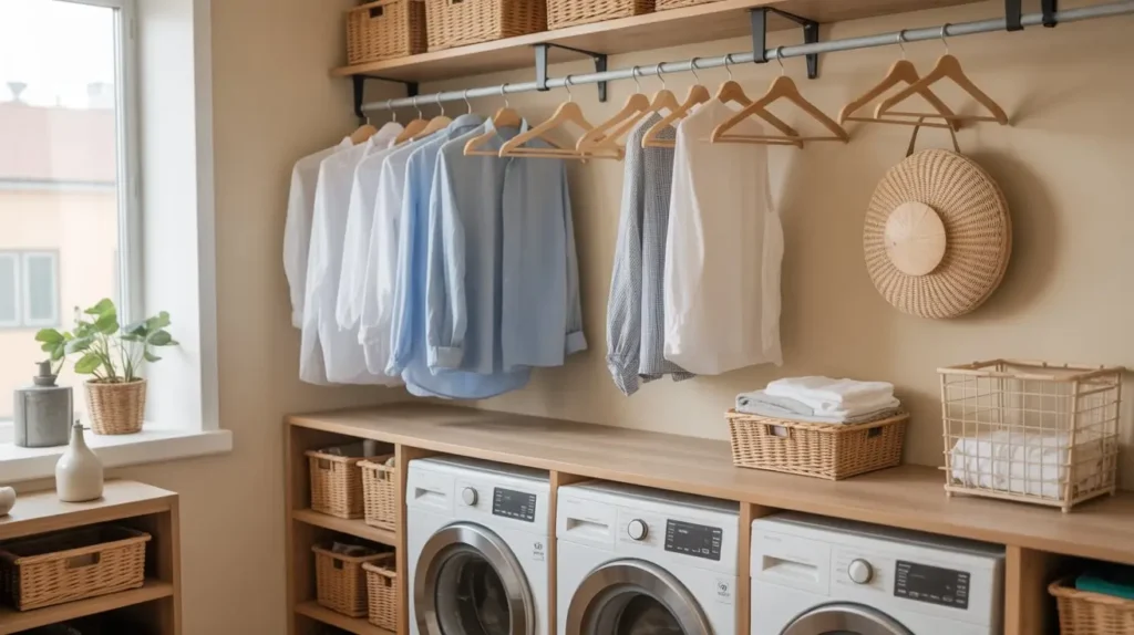 You don’t have to tackle all 15 of these ideas at once (unless you’re feeling particularly ambitious!). Just pick one or two that resonate with you and would solve your biggest laundry room headaches. Whether it’s finally getting a real folding surface or just organizing your detergent in pretty jars, every small change adds up.
