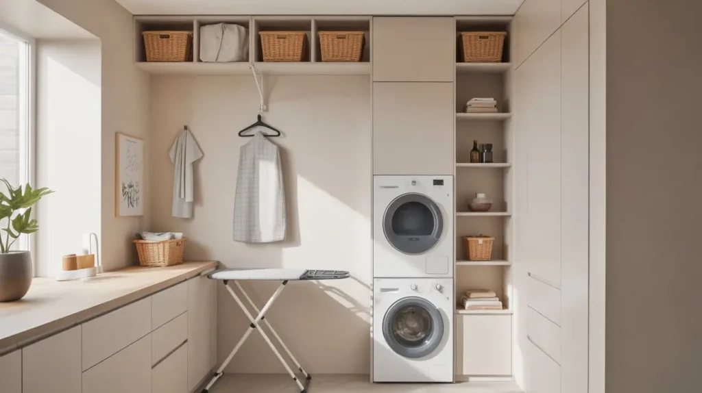 An ironing board is one of the most awkward things to store. It’s long, clumsy, and always seems to fall out of the closet at the worst possible moment. A wall-mounted setup solves this problem beautifully by giving your ironing board a permanent, out-of-the-way home.