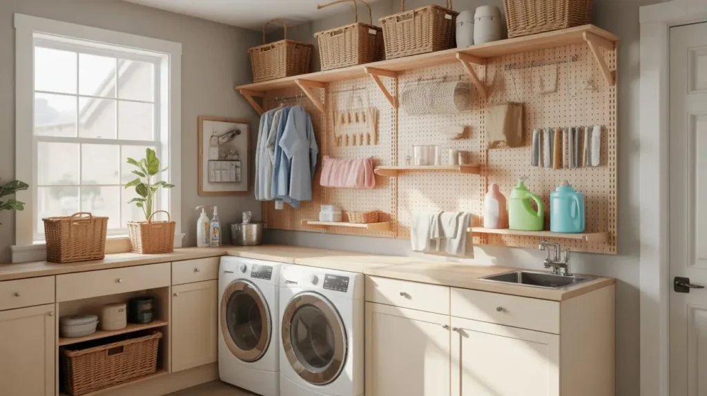 Think pegboards are just for garage workshops? Think again. A pegboard is one of the most versatile and customizable organizational tools you can bring into your laundry room. It’s a blank canvas for storing all those awkward, hard-to-place items.