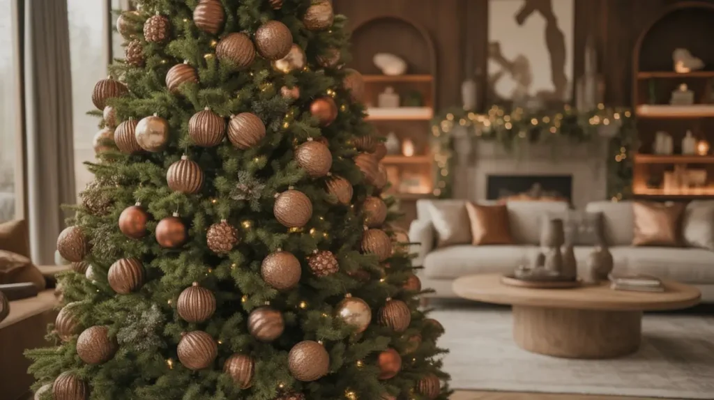 It’s luxurious without being stuffy. The combination of caramel and bronze is so rich and inviting. It makes the whole room feel warmer. This tree is the epitome of “cozy glam” and it photographs beautifully, making your home look like it’s straight out of a design magazine.
