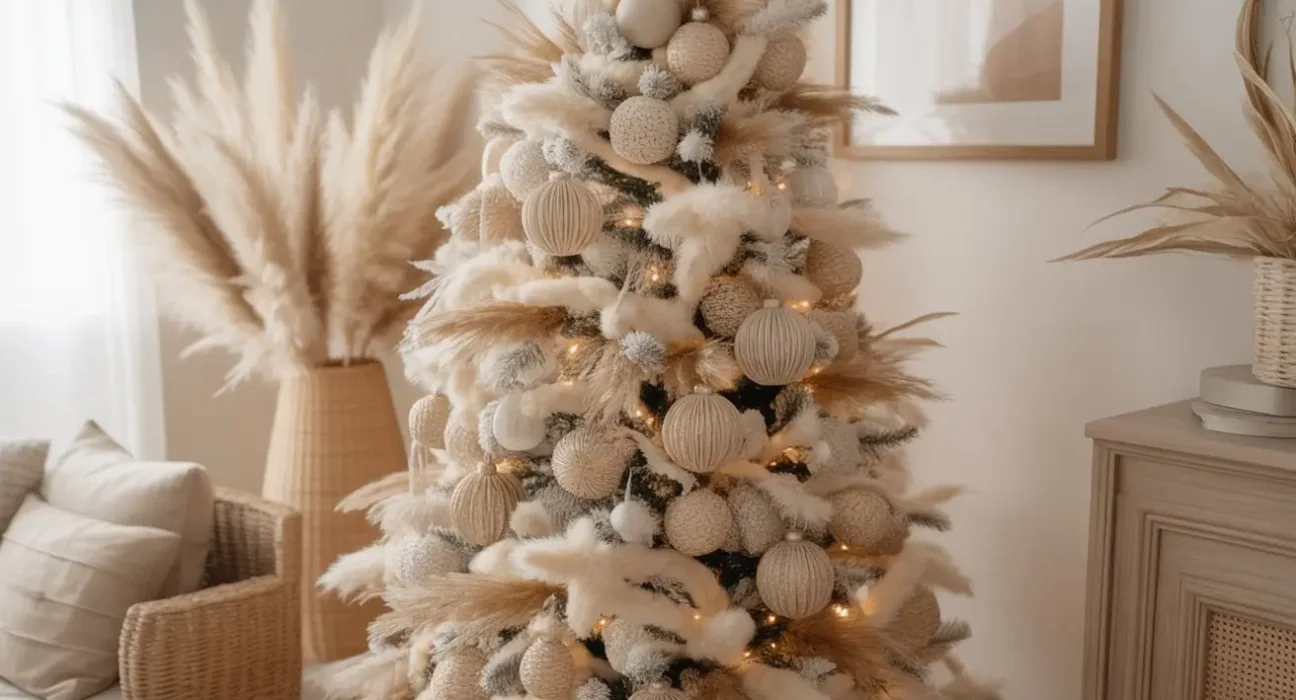 12. Beige Boho Pampas Christmas Tree