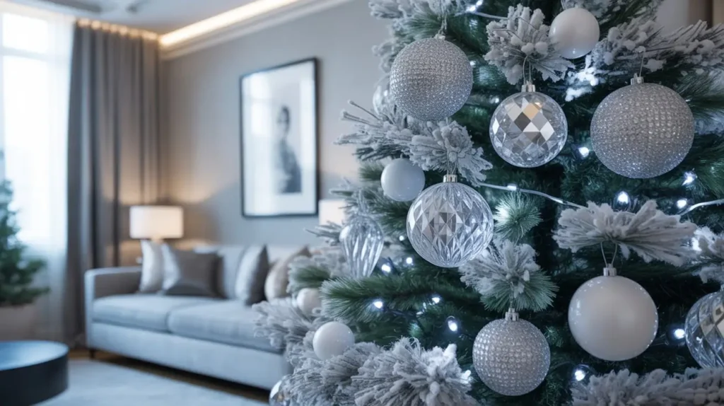 - Incorporate mirrored ornaments and highly reflective silver baubles.