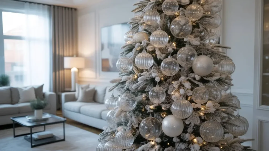 - Ribbons & Garland: Use a garland made of large, faceted acrylic crystals. It will look like ropes of diamonds draped on the tree. A very sheer ribbon with silver glitter can also be woven in subtly. FYI, this is serious business.
