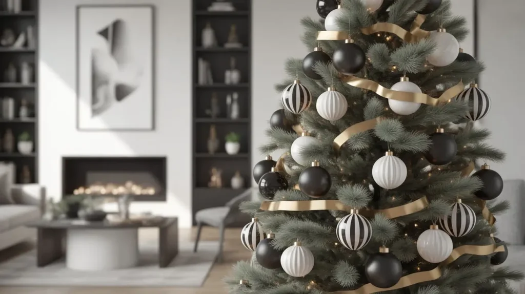 - Ribbons & Garland: A bold, black-and-white striped ribbon is practically mandatory. A simple, thin black velvet ribbon can also look incredibly chic when tied in simple bows on the branch tips.