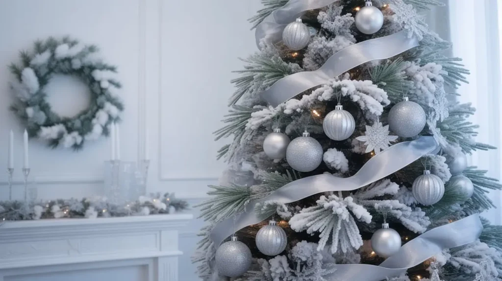 If the crystal tree is an ice princess, this is the Snow Queen’s entire palace. This theme is cool, shimmering, and breathtakingly beautiful. It captures the magic of a silent, snowy forest at twilight. It’s all about layering shades of silver, white, and gray to create a monochromatic masterpiece.