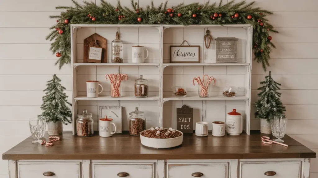 Nothing says cozy Christmas quite like a hot cocoa bar, and the farmhouse version is ridiculously charming.