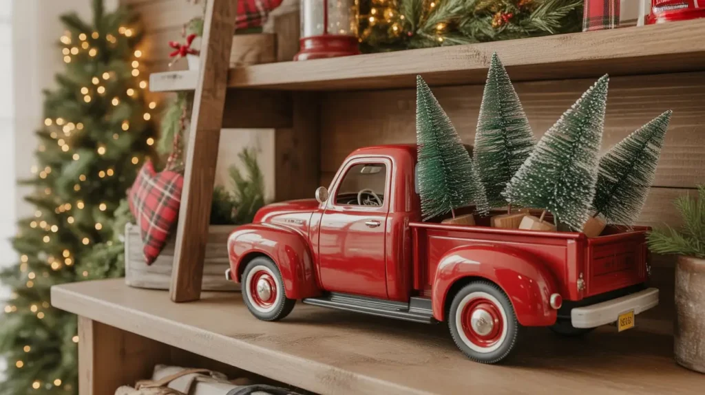 If you’re crafty, you can even DIY a wooden truck cutout. Just trace a template, cut it from reclaimed wood, and paint it in that classic red. Instant farmhouse cred 🙂
