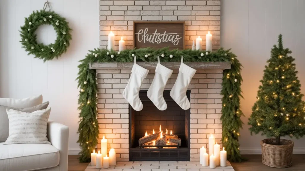 Not everyone has a brick fireplace, but if you do—whitewashing it for the holidays is a game-changer. The soft, weathered look screams farmhouse elegance.