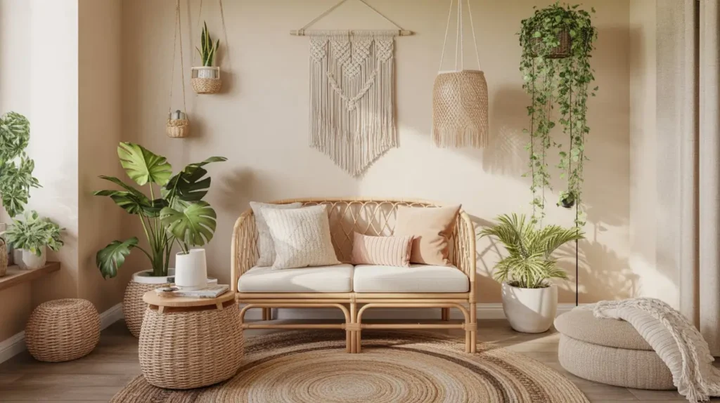 - Natural Materials are a Must: Rattan, wicker, wood, and jute are the backbone of this style. Think a wicker peacock chair in the corner or a large jute rug.