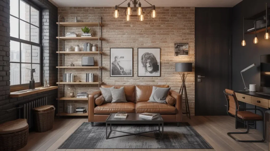 - The “Brick” Wall: No exposed brick? No problem. There are incredibly realistic peel-and-stick faux brick wallpapers available. An accent wall behind your sofa or bed can instantly set an industrial tone.
