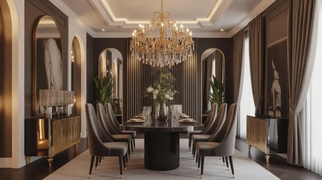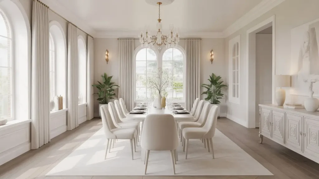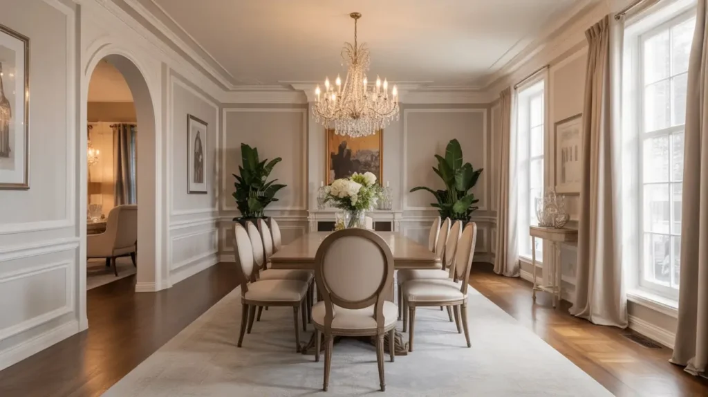 • Lighting: A crystal or brass chandelier is practically a requirement. It should be centered perfectly over the table, acting as the room’s primary piece of jewelry.
