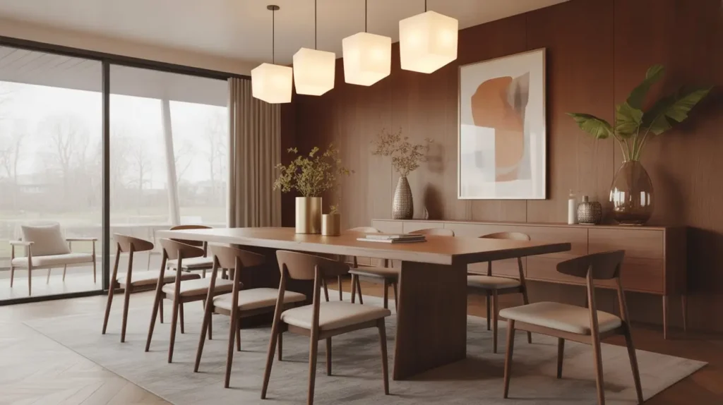 Mad Men fans, this one’s for you. Mid-Century Modern (MCM) design, popular from the 1940s to the 1960s, is characterized by clean lines, organic shapes, and a seamless connection between indoors and out. An MCM formal dining room is effortlessly cool, stylish, and just a little bit retro.