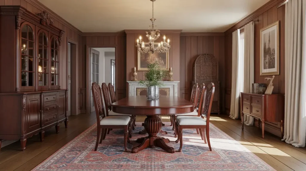 There’s something incredibly comforting and solid about a traditional dark wood dining room. It feels grounded, historic, and permanent. This is a style that has endured for a reason—it’s handsome, dignified, and creates an incredibly warm and inviting atmosphere for gathering.