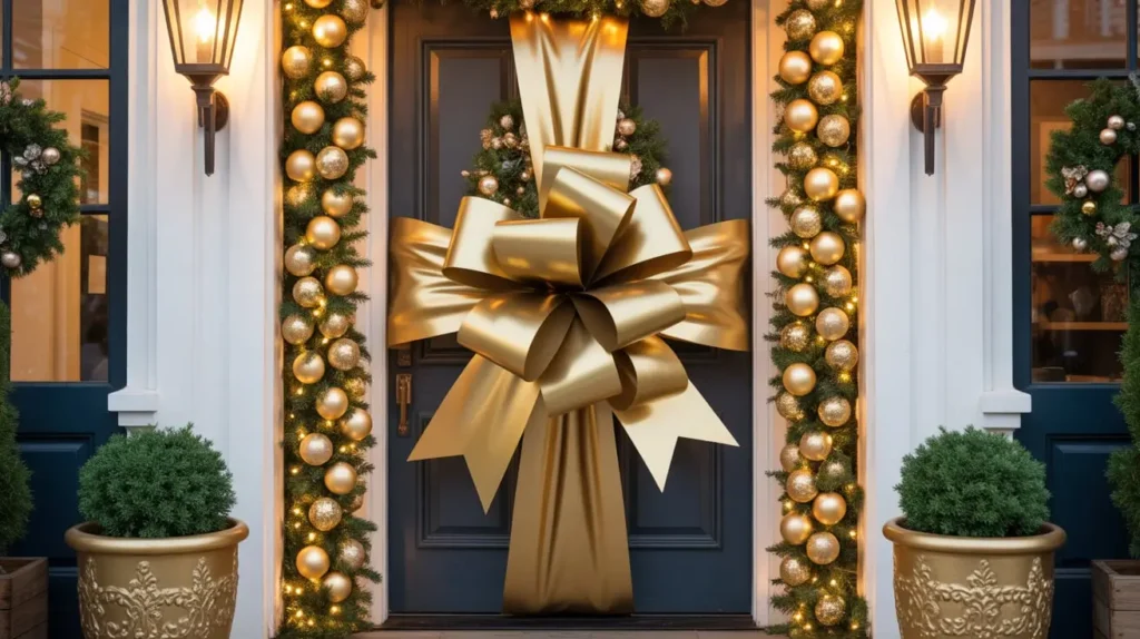 4. Glam Gold Ribbon Holiday Door
