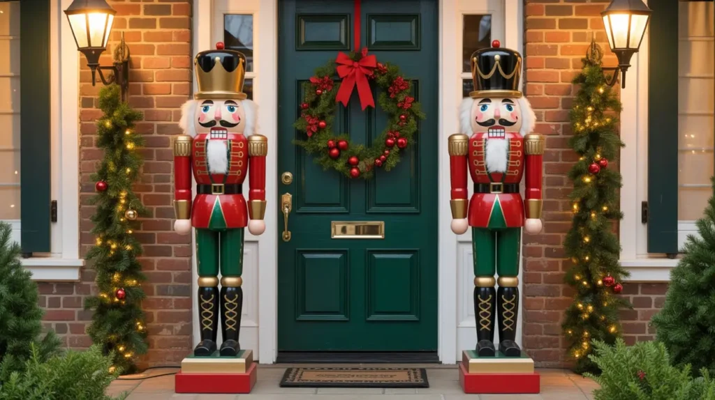 - The Royal Guards: This is the non-negotiable element. You need two large-scale nutcracker soldiers to stand guard on either side of your door. They create instant symmetry and a powerful focal point. The taller, the better, for maximum impact.