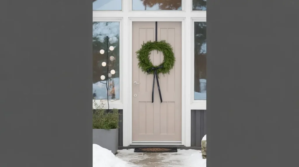 - Minimalist Accents: Don’t crowd the star of the show. If you want to add more, stick to simple, symmetrical elements. A pair of small, live evergreen trees in black planters on either side of the door provides a perfect frame.