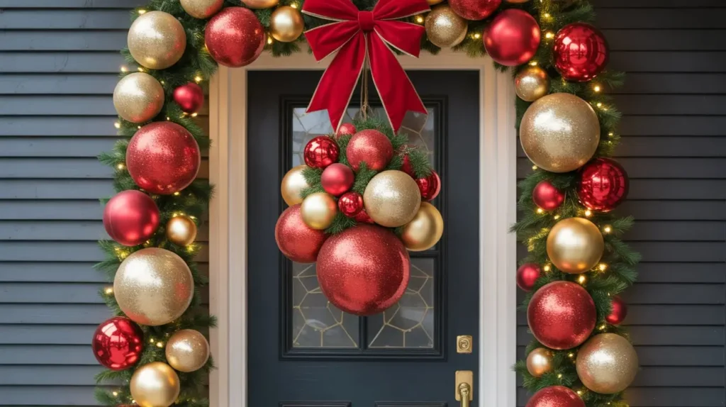This look is all about surprise and delight. It takes a familiar object—a Christmas ornament—and completely changes its context by blowing up the scale. It’s fun, it’s graphic, and it’s a fantastic conversation starter. It’s an art installation for your front door.