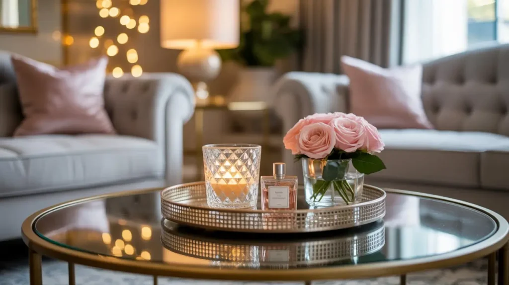 A mirrored or metallic tray—think gold, silver, or rose gold—instantly elevates whatever you put on it. It adds a layer of reflection and luxury, and it keeps your glamorous goodies from looking like clutter. It’s organized opulence.