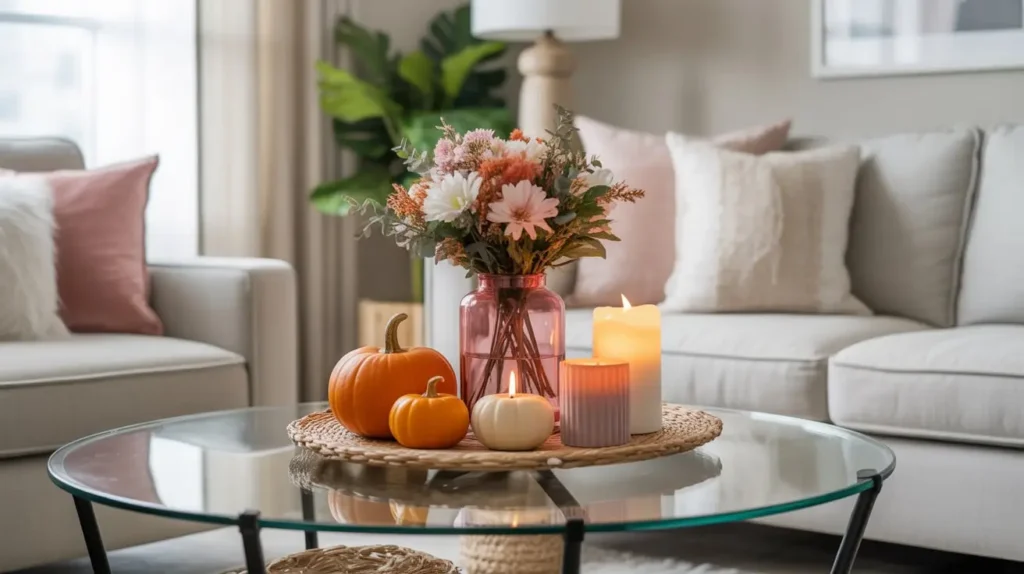 Your coffee table is prime real estate for celebrating the seasons. It’s a small, manageable space where you can inject a bit of festive cheer without having to redecorate your entire house. A glass table is especially great for this because it provides a neutral stage that lets your seasonal decor shine.