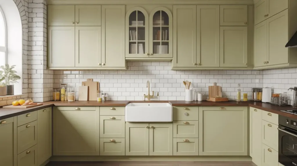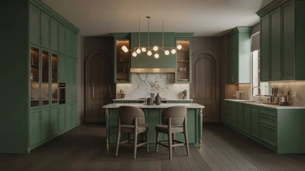 - Matte-finish green cabinets (in sage, olive, or emerald)