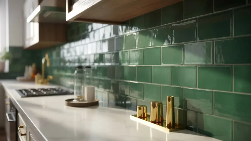Let’s talk backsplashes, because this is where you can really have some fun with green and gold without committing to a full kitchen overhaul.