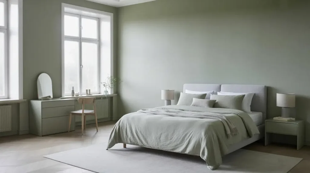 Sometimes you need gentle. A sage and light gray bedroom creates the softest, most soothing retreat imaginable.