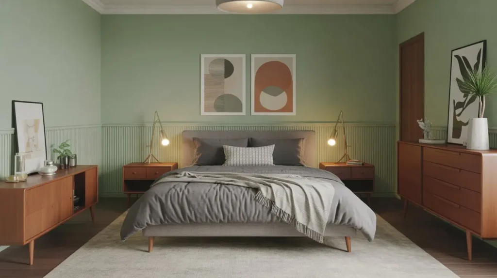 Mid-century modern never really went out of style. A mid-century green and gray bedroom channels that retro-cool aesthetic while feeling completely contemporary.