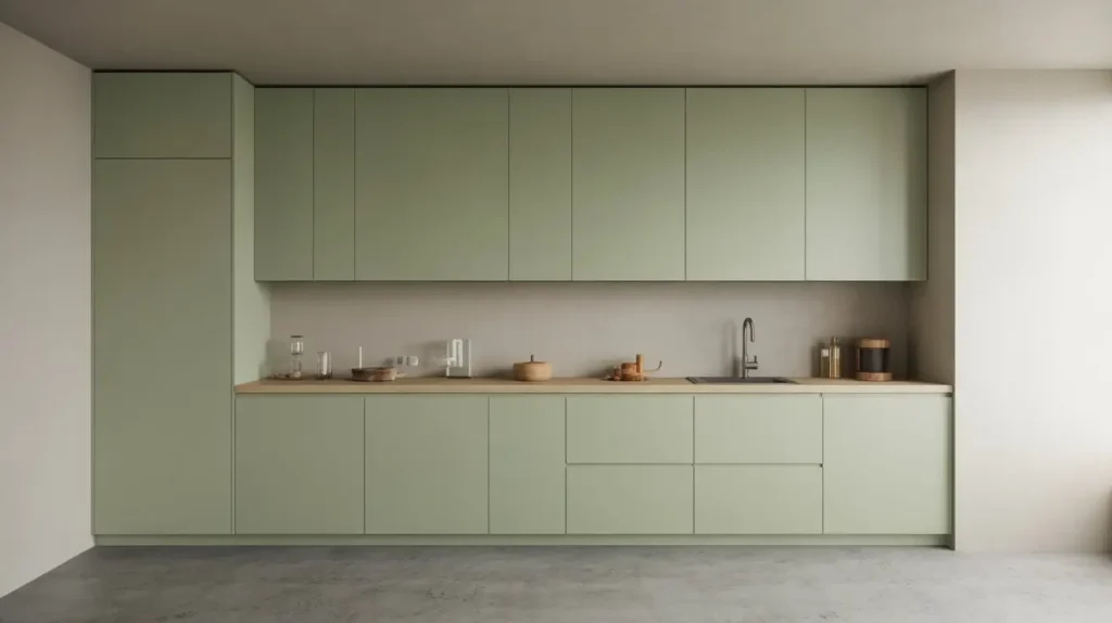 - Cabinets: This is the home of the flat-panel, handleless cabinet. Look for push-to-open mechanisms or integrated pulls to maintain those clean, unbroken lines. The green should be a solid, uniform color—a medium moss green or a dark teal could work beautifully.