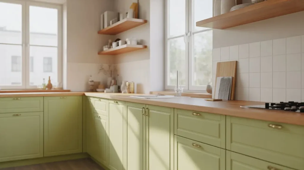 Scandinavian design is all about maximizing light and creating a sense of calm well-being (the famous hygge). A very pale, almost pastel green paired with blonde woods like ash, birch, or pale maple creates an incredibly bright and serene atmosphere. The focus is on clean lines, natural materials, and an uncluttered feeling.
