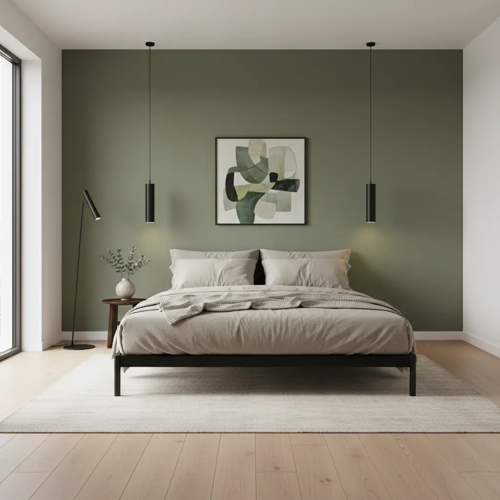 Pair olive green walls with crisp white bedding and black metal light fixtures. Add one statement piece—maybe a large abstract painting or a sculptural chair—and you’re golden. The key is keeping things edited and intentional.