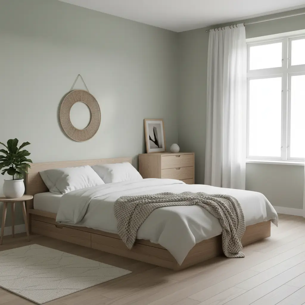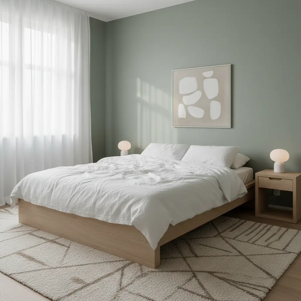 1. Sage Green Minimalist Bedroom