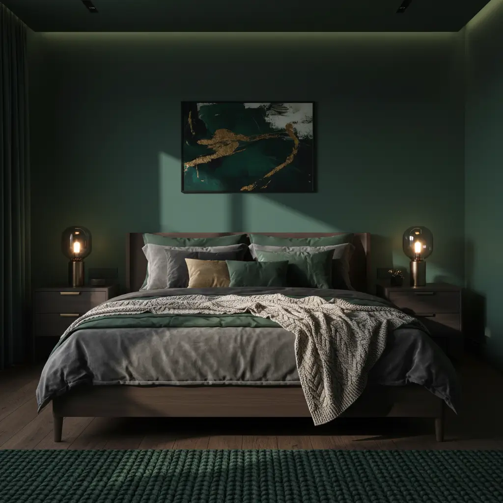 2. Dark Green Cozy Bedroom