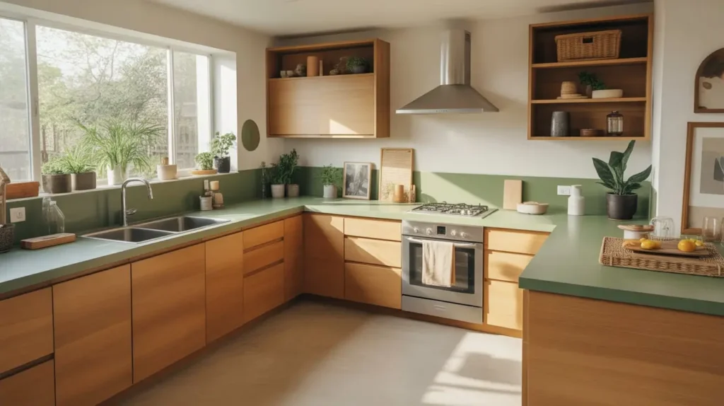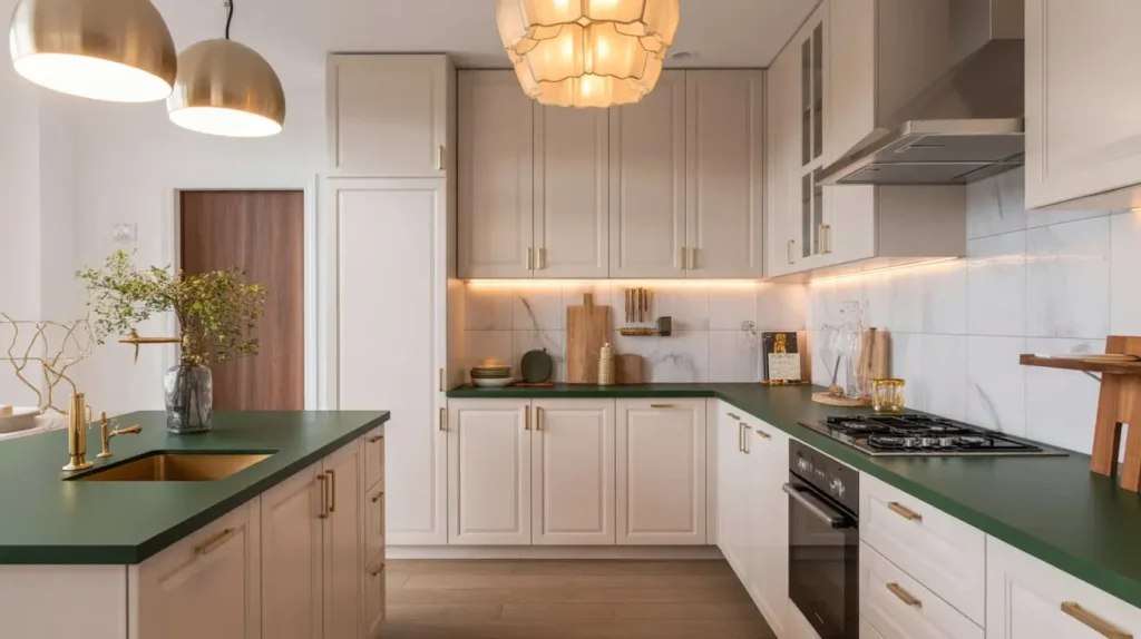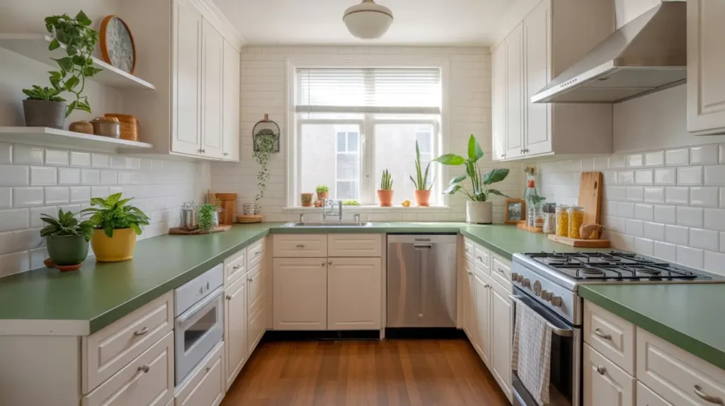 Small kitchens present unique challenges, but green countertops can actually work in your favor. The key is choosing the right shade and designing around it intentionally.
