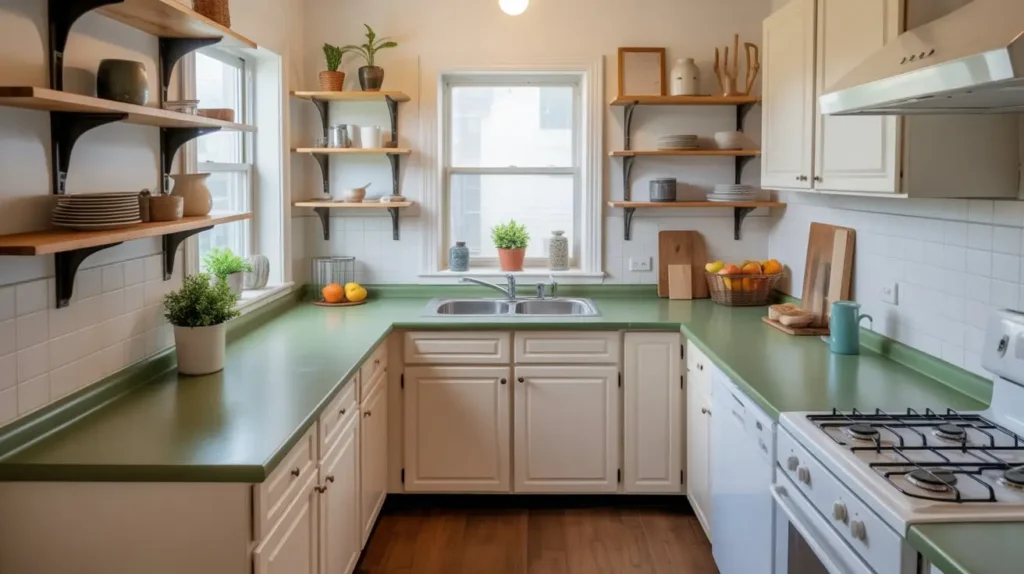 Small kitchens force you to be creative and intentional with every choice. A green countertop can be that unique element that makes your small kitchen memorable rather than forgettable.