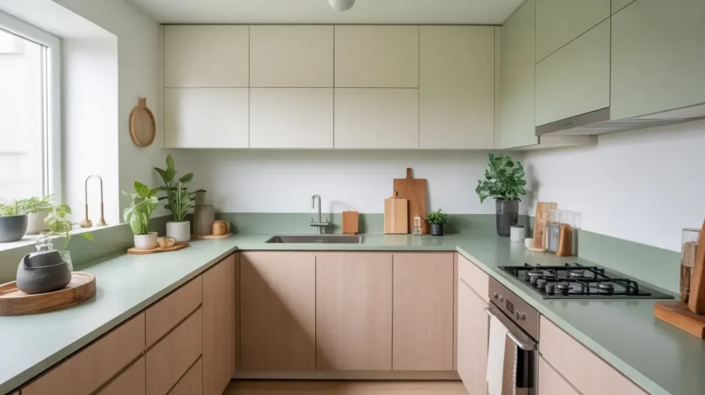 Sage green is having a moment, and honestly? I’m here for it. This muted, sophisticated green brings a calming, organic feel to modern kitchens without screaming for attention like some colors do (looking at you, millennial pink).