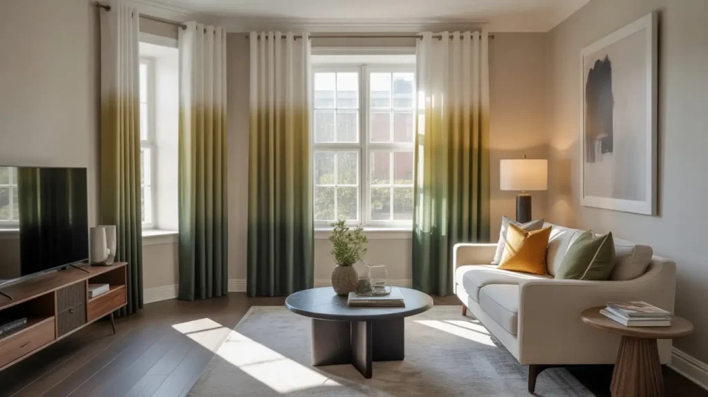 - Pull Colors from the Curtain: Use the different shades in the ombre as your accent colors for the rest of the room. Pull the darkest green for a throw pillow, the mid-tone for a vase, and the lightest shade for a lamp base. This creates a beautifully coordinated look.