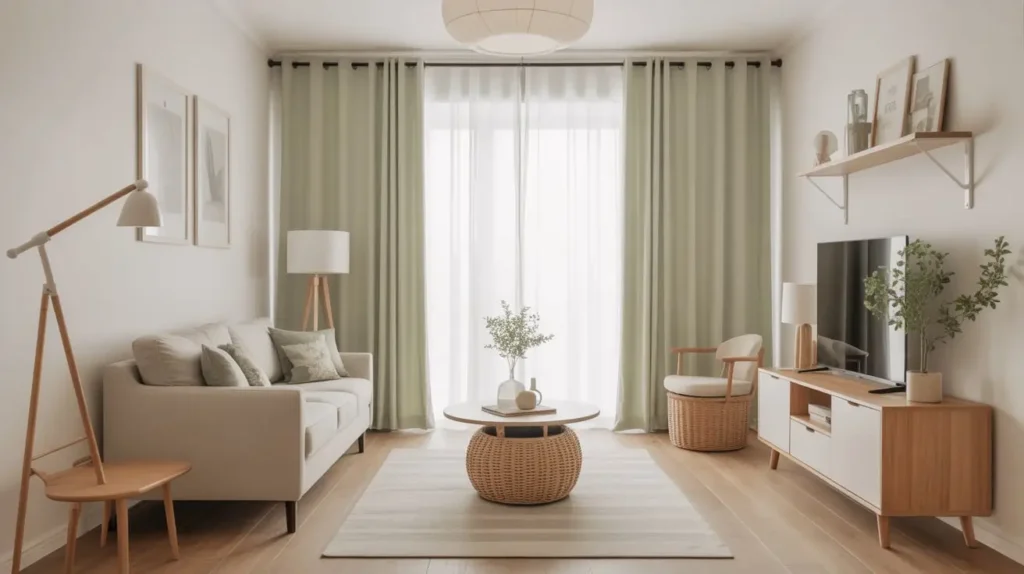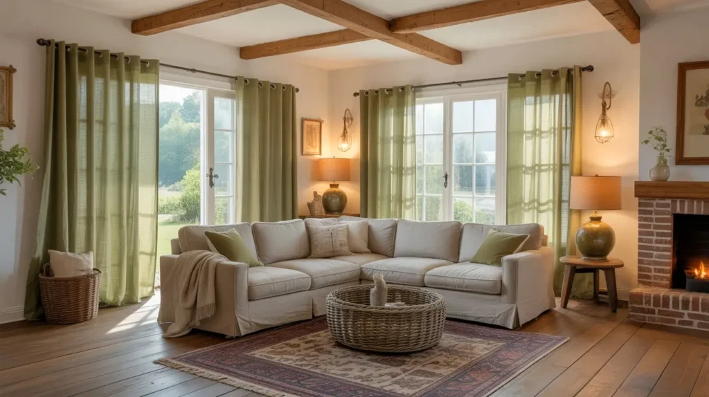 - The Surrounding Space: Sage green loves light wood tones, crisp whites, and plenty of natural textures. Think jute rugs, ceramic vases, and of course, a few live plants to echo the green of the curtains.