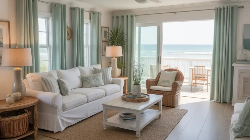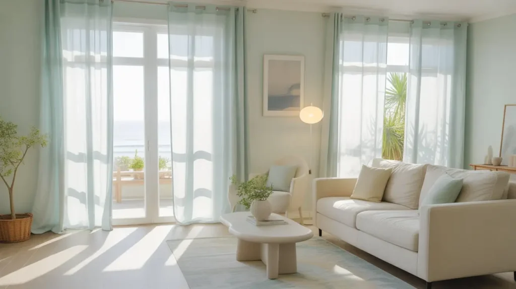 - Natural Companions: Pair your seafoam curtains with a palette of sandy beige, crisp white, and watery blues.