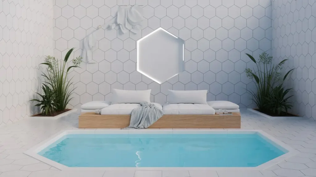 - The “Tile Rug”: A popular technique is to create a “rug” effect in the center of the floor using a different color hex tile, with a border of the main color around the edges. This looks particularly stunning in front of a vanity or a freestanding tub.