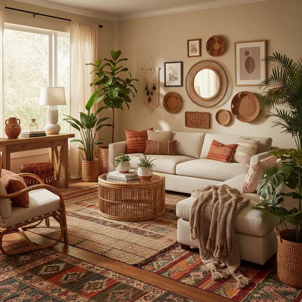 This style throws out the rulebook and embraces layered patterns, global influences, and personal collections that tell your story. I’ve seen boho living rooms that look like organized chaos in the best possible way—vintage rugs layered over each other, plants in every corner, wall hangings from different continents, and somehow it all WORKS.