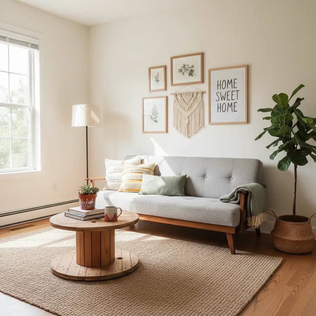 - Strategic splurges: Good sofa, quality rug, then save on everything else