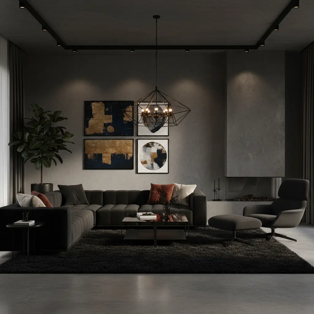 - Layered lighting: Essential when natural light gets absorbed by dark colors