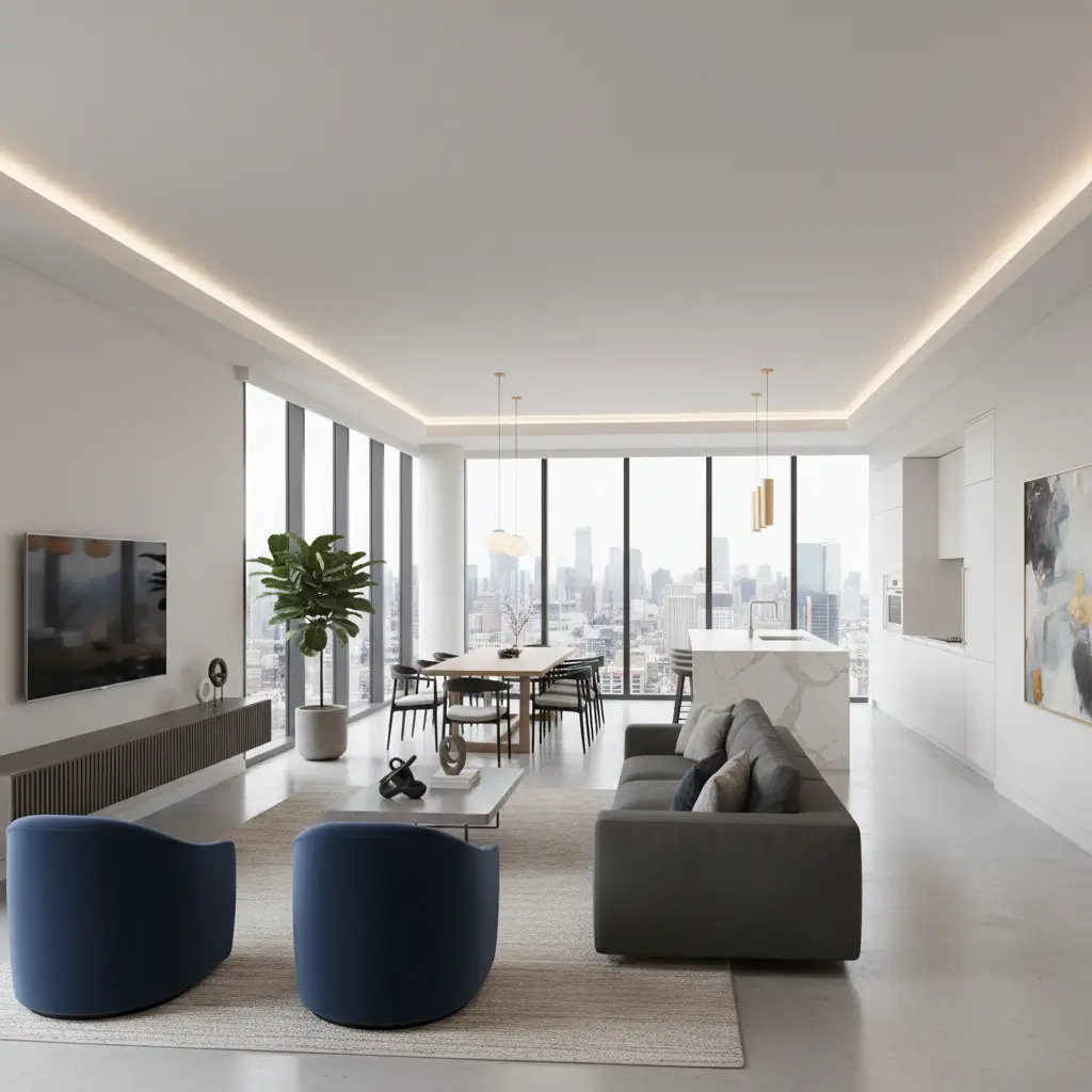 This layout merges your living room with dining and sometimes kitchen areas, creating one flowing space. The challenge? Defining separate zones without actual walls. You’ll use furniture placement, area rugs, and lighting to create invisible boundaries that your brain recognizes even when your eyes don’t see barriers.