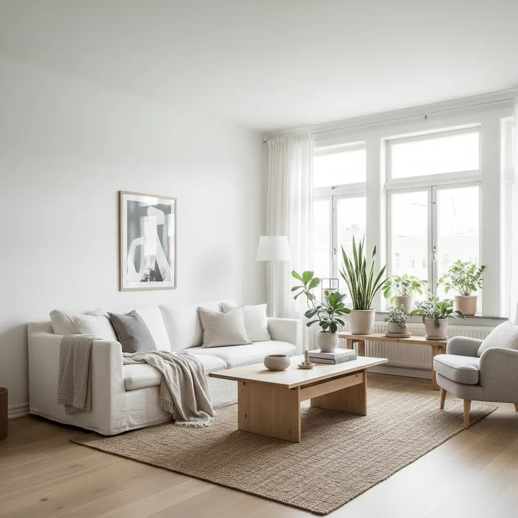 The color palette sticks to neutrals: whites, grays, blacks, with maybe one accent color if you’re feeling spicy. You’ll want furniture with sleek silhouettes and zero ornate details. Think of a streamlined sofa in a solid color, a simple coffee table (maybe glass or light wood), and storage solutions that hide away all your random stuff.