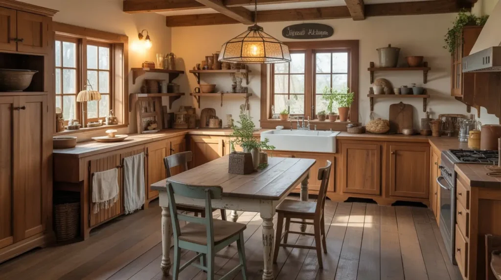 2. Cozy Farmhouse Kitchen with Rustic Dining Area