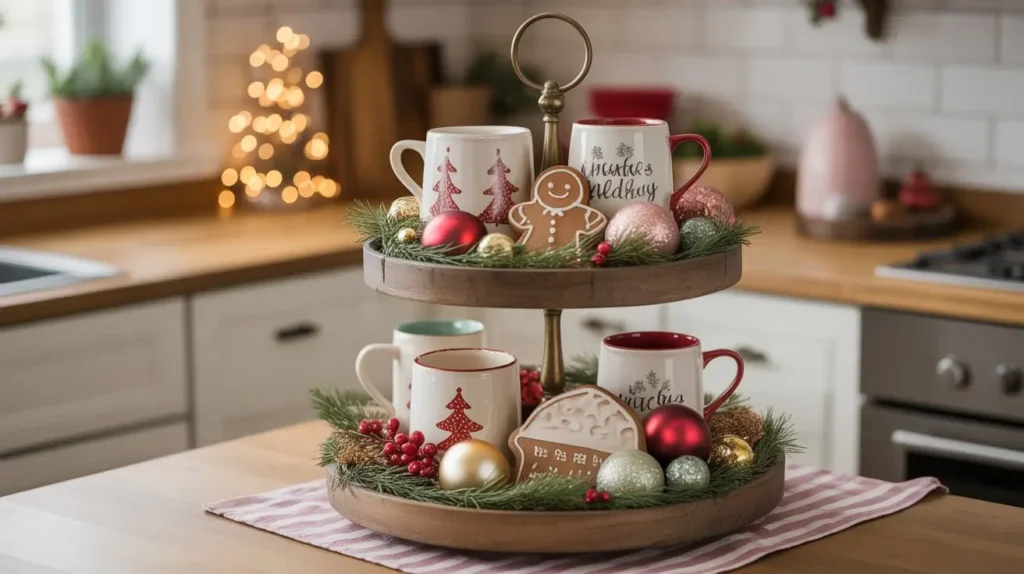 11. Christmas Tiered Tray Kitchen Display